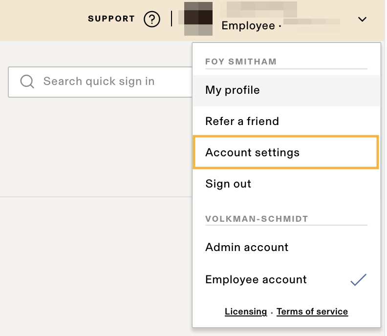 On the top right of your Rippling employee account, click your profile > Account settings.